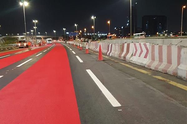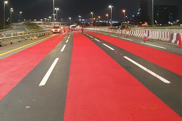 PlastiRoute? Spraygrip brightens up this Dubaian highway to alert drivers that it is time to slow down and increase safety on the busy road.